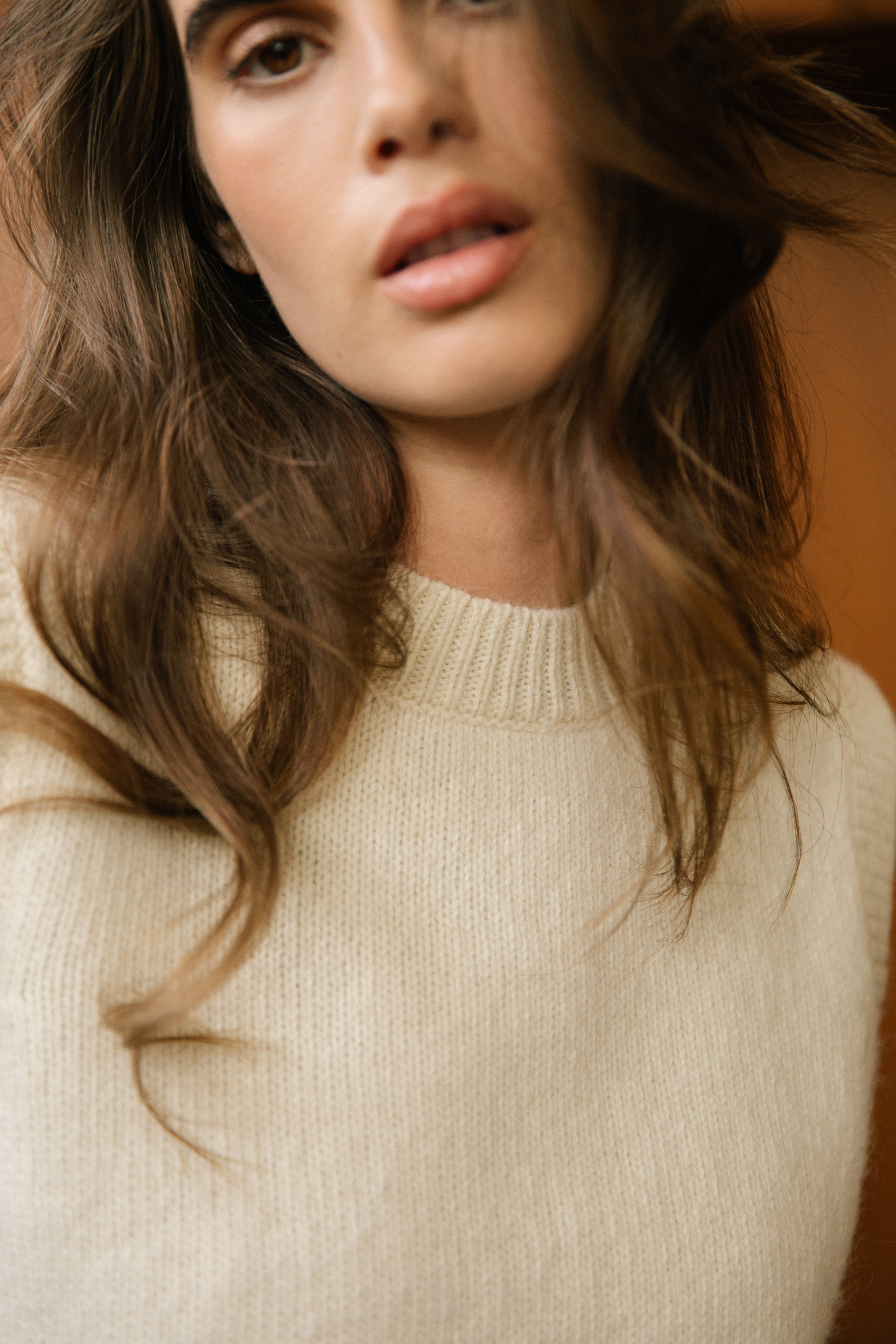Pour notre pull Choses candides, nous avons choisi de l’alpaga recyclé mélangé.