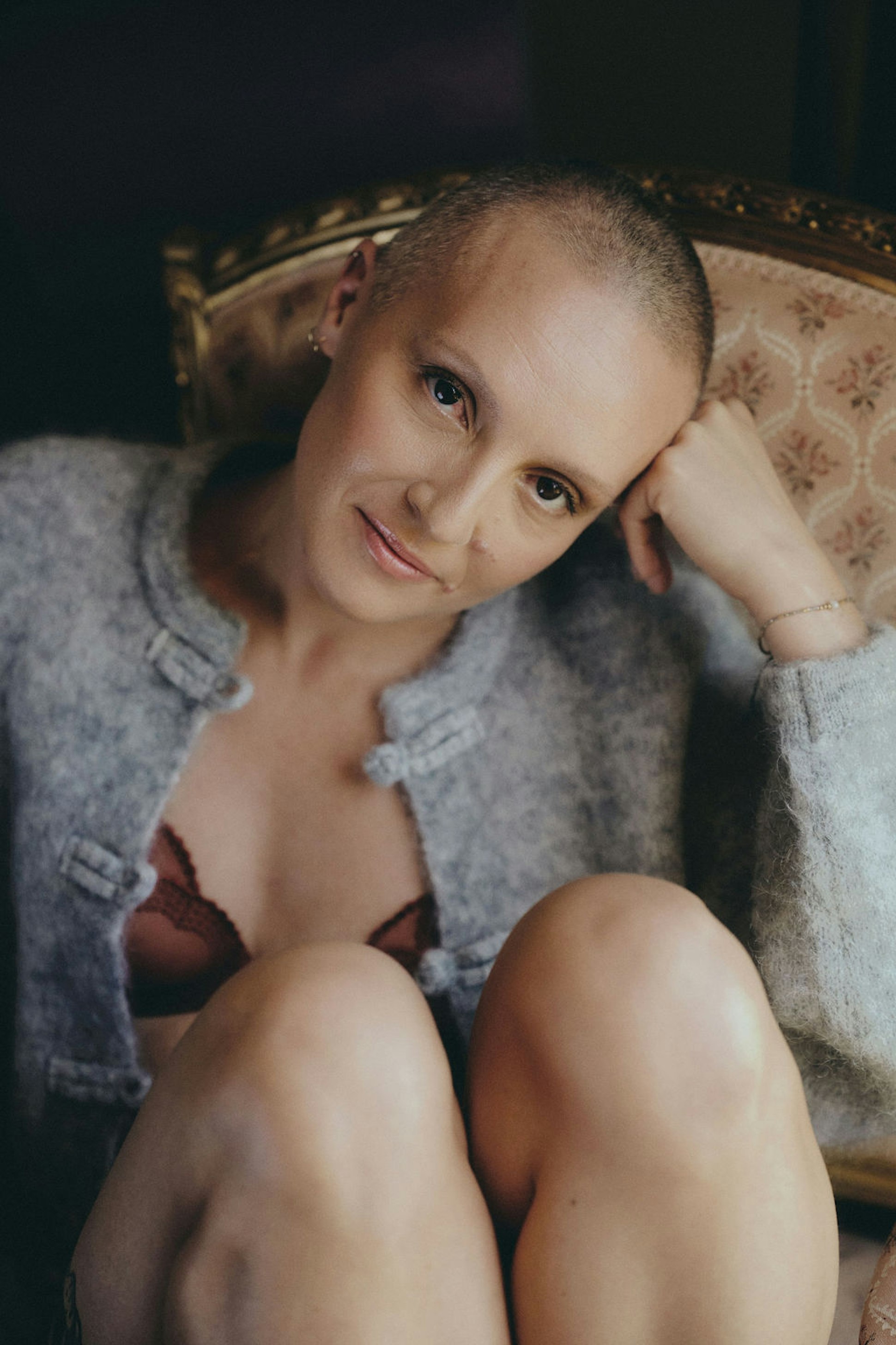 Depuis l’annonce, je suis un peu en mode « pilote automatique », je suis mon protocole sans trop me poser de questions et dans ma tête il n’y a qu’une seule possibilité, c’est la guérison. J’ai assumé facilement mes cheveux rasés, la perte de mes cils et sourcils donc j’espère que ça se passera de la même façon pour la mastectomie, même si je sais qu’il y aura des moments difficiles.
